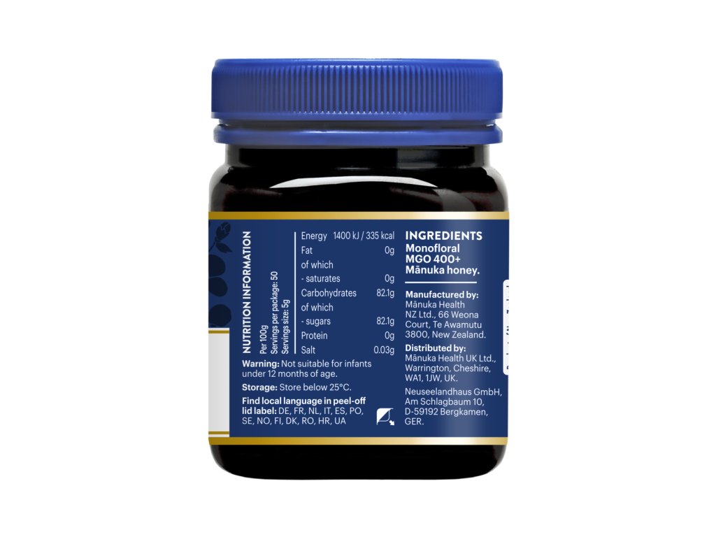 Zloženie: 100% med z kríka Manuka - koncentrácia 400 mg/kg metylglyoxalu v mede