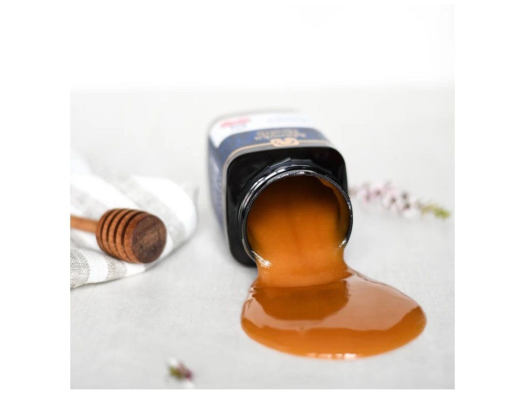 Manuka Health med je prémiový med z nektáru kríkov manuka (Leptospermum scoparium), ktoré rastú v čistej prírode Nového Zélandu. Vyznačuje sa vysokým obsahom prírodnej látky metylglyoxal (MGO), ktorá je zodpovedná za jeho mimoriadnu antibakteriálnu aktivitu a odlišuje ho od bežných kvetových medov. Má hustú, krémovú konzistenciu, jantárovú farbu a výraznú chuť s jemnou horkosťou, takže pôsobí plnšie než štandardné medy.